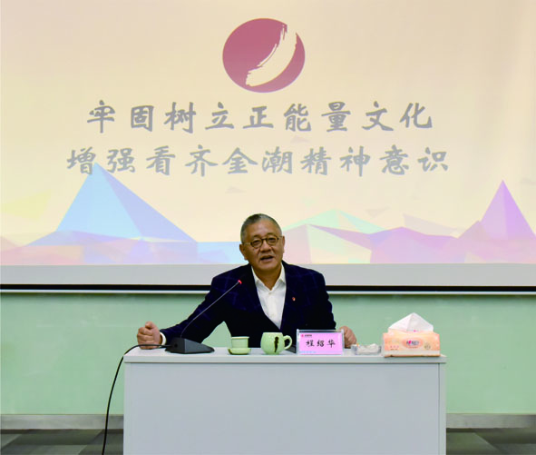 12月25日上午,山東金潮控股集團(tuán)有限公司在報(bào)告廳二樓會(huì)議室舉行“牢固樹(shù)立正能量文化,增強(qiáng)看齊金潮精神意識(shí)”主題宣貫活動(dòng)。董事長(zhǎng)程紹華對(duì)這次活動(dòng)簡(jiǎn)要進(jìn)行了點(diǎn)評(píng)。