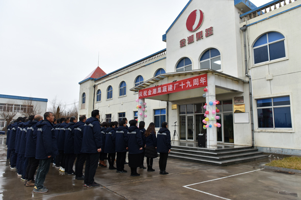 12月16日冬雨瀟瀟,在這個值得紀念的大喜日子,煙臺金潮果蔬公司全體干部員工統(tǒng)一著裝,整齊列隊,開展豐富多彩的文體活動,以“原料采購總量、生產(chǎn)線開機率、濃縮果汁總產(chǎn)量三項歷史新高,經(jīng)營業(yè)績穩(wěn)步提升”的優(yōu)異成績,向公司建廠19周年獻上一份厚禮。