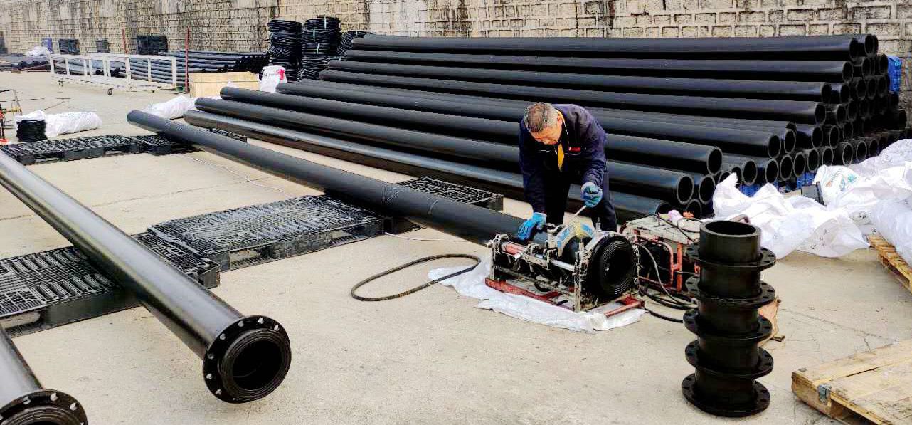 國(guó)慶中秋雙節(jié)前夕,金潮新材公司接到招遠(yuǎn)市內(nèi)客戶急需規(guī)格為250×18.4 PE給水管660米和225×20.5 PE尾礦管1800米的兩筆訂單,發(fā)貨前需將管道兩端焊接好法蘭連接件。為確保訂單如期供貨,金潮新材公司生產(chǎn)部組織精干力量,放棄假日休息,起早貪黑、加班加點(diǎn)熱熔對(duì)接管材。單根225的大口徑管材重達(dá)130公斤,需要2人合力搬上對(duì)接設(shè)備。他們克服對(duì)接難度大、要求工藝高、時(shí)間緊、任務(wù)重等困難,憑著金潮人敬業(yè)的精神、過(guò)硬的技術(shù)、吃苦耐勞的作風(fēng),保質(zhì)保量地按時(shí)完成了供貨任務(wù)。