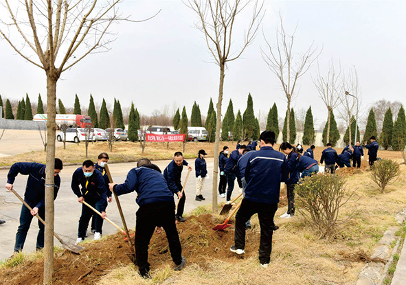 3月11日上午九點(diǎn)三十分,植樹活動(dòng)準(zhǔn)時(shí)開始,進(jìn)行了簡單的分組分工后,金潮控股集團(tuán)公司高管領(lǐng)導(dǎo)與員工們一起戴上手套,手握鐵鍬,熱情飽滿地來到種植區(qū)域,一起挖坑、扶苗、培土、澆水,開展了一場植樹的“盛宴”?;顒?dòng)現(xiàn)場一派熱火朝天的勞動(dòng)景象,每位金潮人的臉上都洋溢著笑容。一個(gè)個(gè)樹坑的挖成,一顆顆樹苗的種下,都象征著一份份綠色的希望;每一滴汗水的留下,每一鏟泥土的填充,則代表著一個(gè)個(gè)奉獻(xiàn)與愛心。經(jīng)過大家的共同努力,植樹節(jié)活動(dòng)取得圓滿成功。