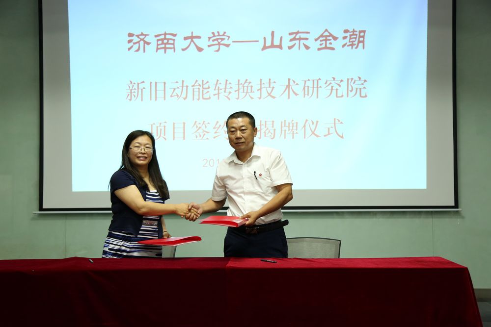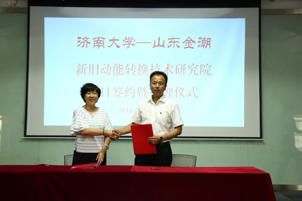 6月30日上午, 山東金潮公司在報告廳二樓會議室隆重舉行“濟南大學——山東金潮新舊動能轉(zhuǎn)換技術(shù)研究院”項目簽約暨揭牌儀式。這標志著“濟南大學——山東金潮新舊動能轉(zhuǎn)換技術(shù)研究院”正式運行;標志著“校企合作”戰(zhàn)略全面啟動。
