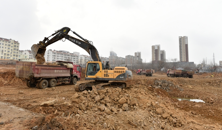 12月5日晚8點(diǎn),北風(fēng)呼嘯,雪花飄飄。在這天寒地凍的夜晚,馬路上行人稀少,人們大多都在溫暖的家中盡享美好的生活。然而在春雨路西側(cè),金潮地產(chǎn)格林春天項(xiàng)目工地上,筆者卻看到了一幅熱火朝天的景象:現(xiàn)場各種大型機(jī)械盡情地“歡唱”,“后八輪”往來穿梭搬運(yùn)物料,挖掘機(jī)的“巨手”與基坑內(nèi)堅(jiān)硬的石料碰撞迸發(fā)出飛濺的火星,破碎錘“突—突—”不知疲倦地轟鳴著……這是金潮建工的工程車隊(duì)在加班開挖格林春天項(xiàng)目的地基。此時(shí)此刻,標(biāo)志著備受市民關(guān)注的“一生之城”——格林春天棚改項(xiàng)目正式破土動(dòng)工。